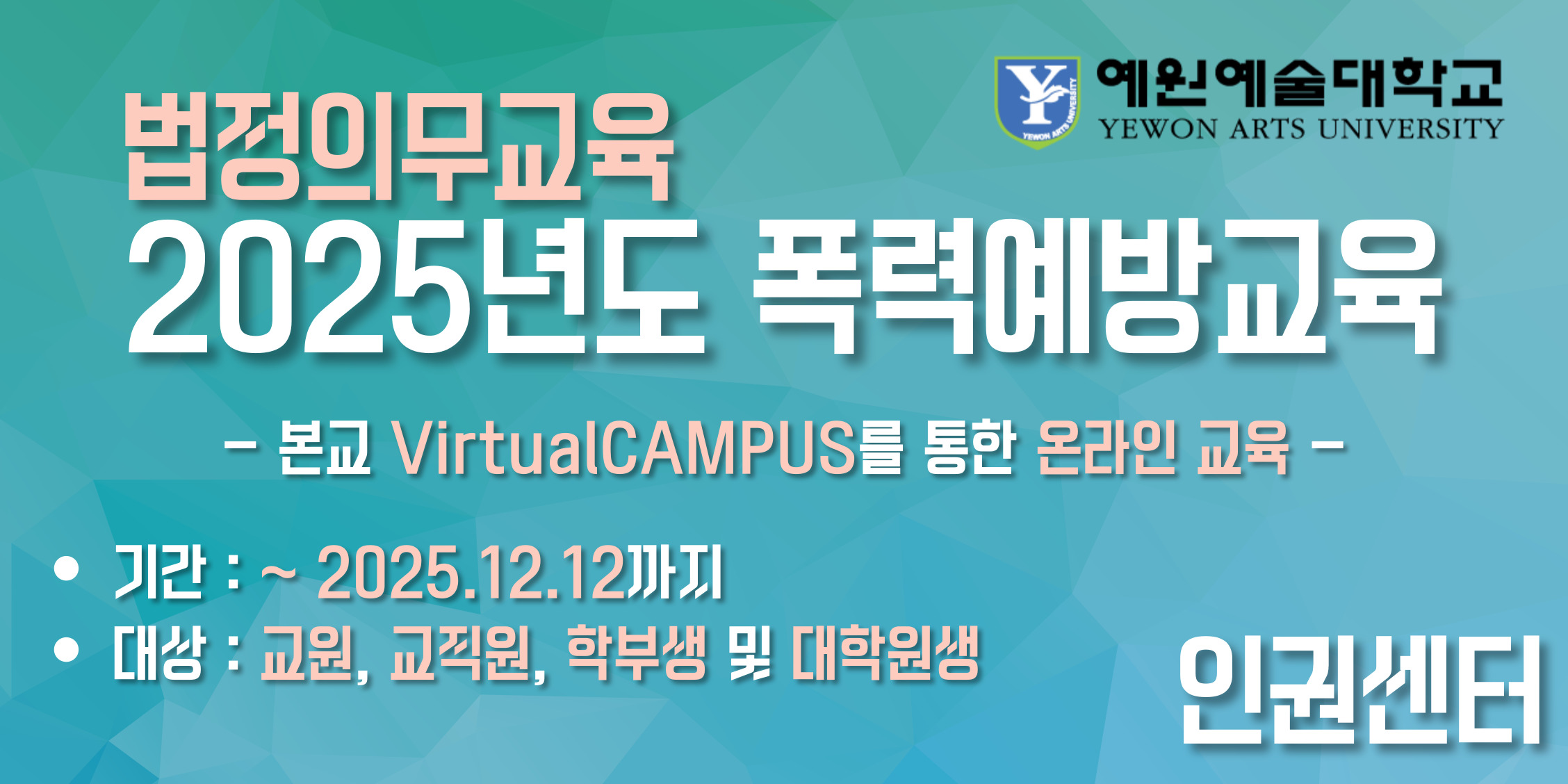 [인권센터] 예원예술대학교 2025학년도 인권 실태조사 안내