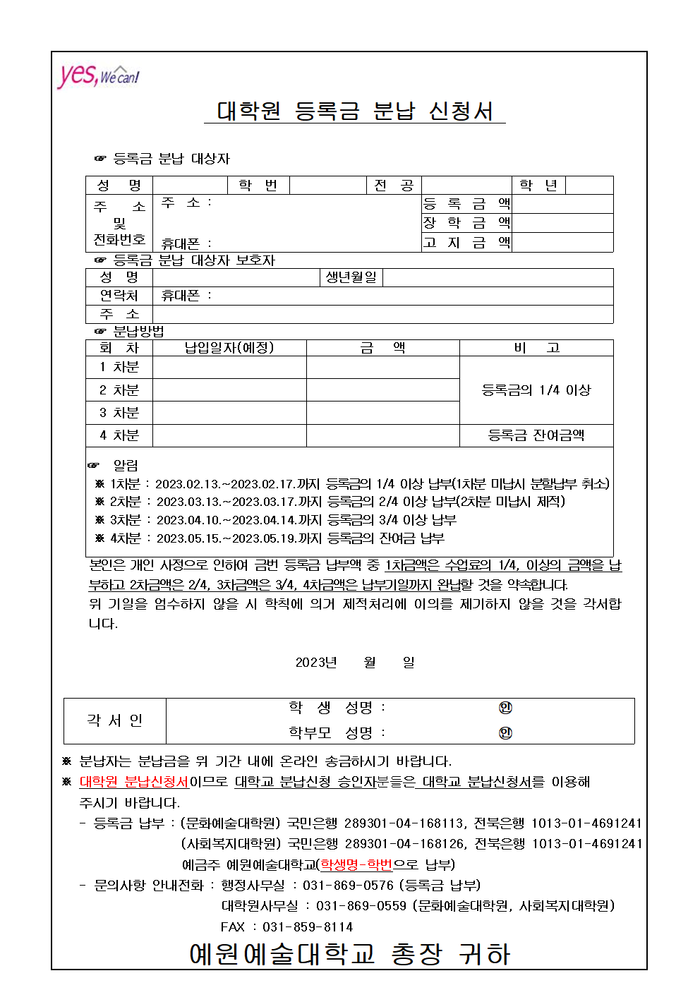 ※ 분할납부를 원하시는 분께서는 첨부된 분납 신청서를 작성하시어 팩스(031-859-8114)로 기간 내 제출하여 주시기 바랍니다.