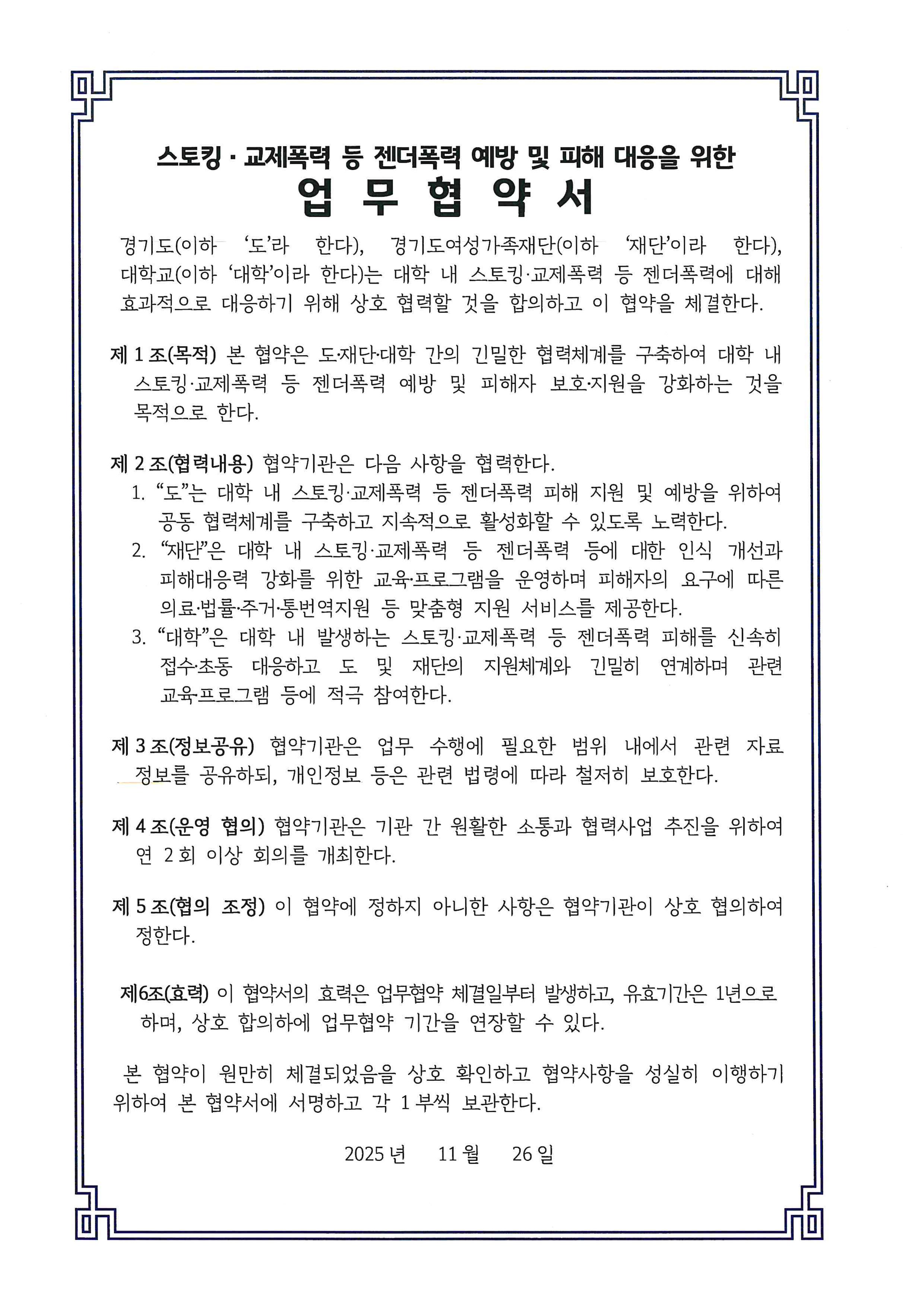 스토킹·교제폭력 등 젠더폭력 예방 및 피해 대응을 위한 업무협약