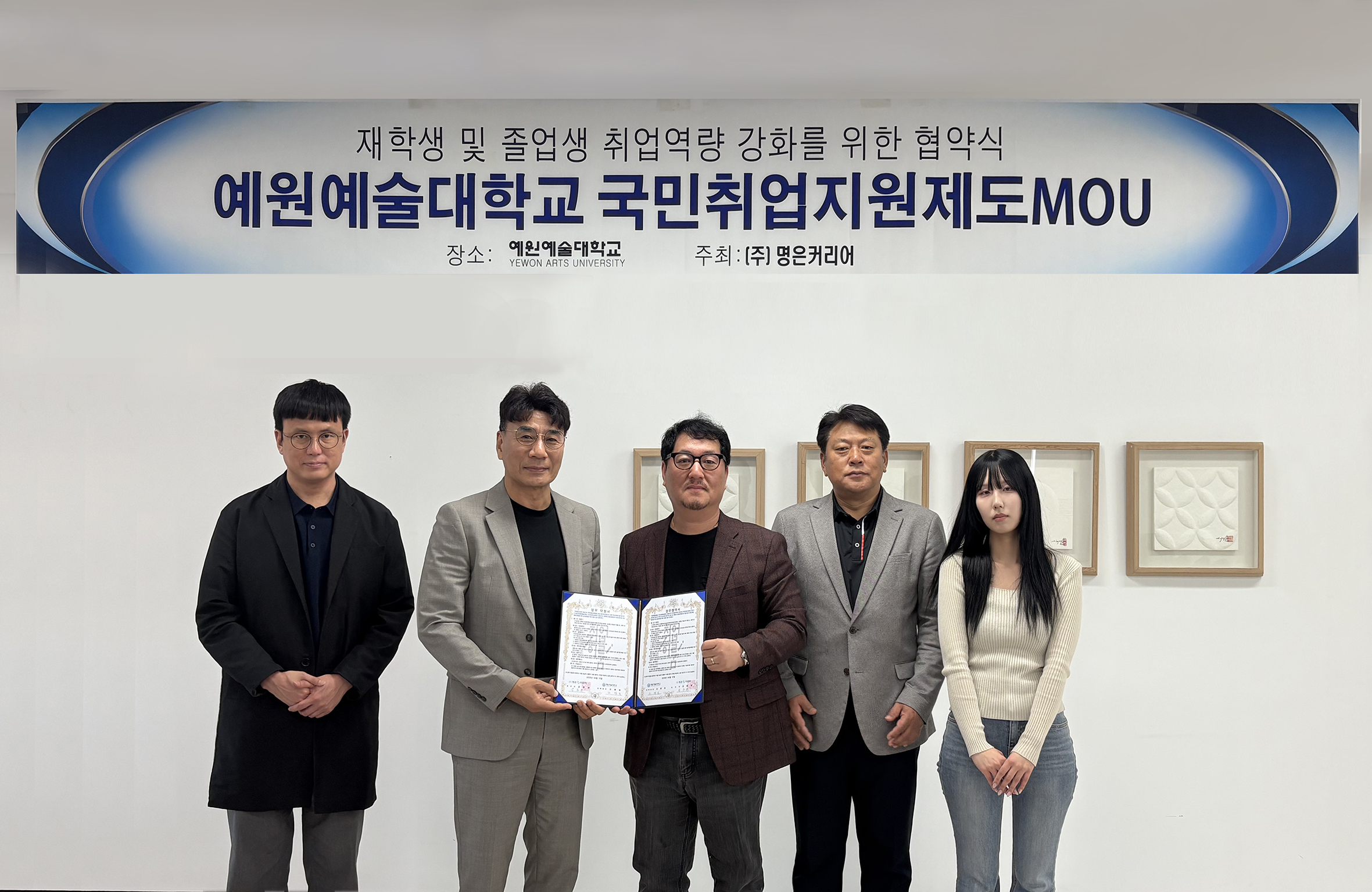 예원예술대학교는 2026년, ㈜명은커리어와 재학생 및 졸업생의 취업역량 강화를 위한 업무협약(MOU)을 재체결하며 지속적인 협력 체계를 이어가고 있다.