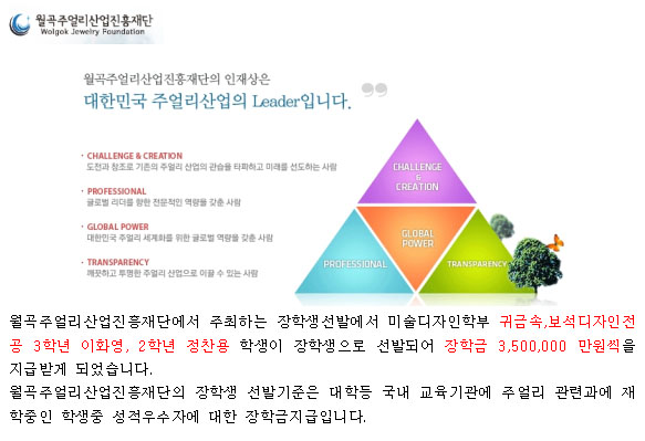 본교 귀금속보석디자인전공 학생 외부장학금 수해소식