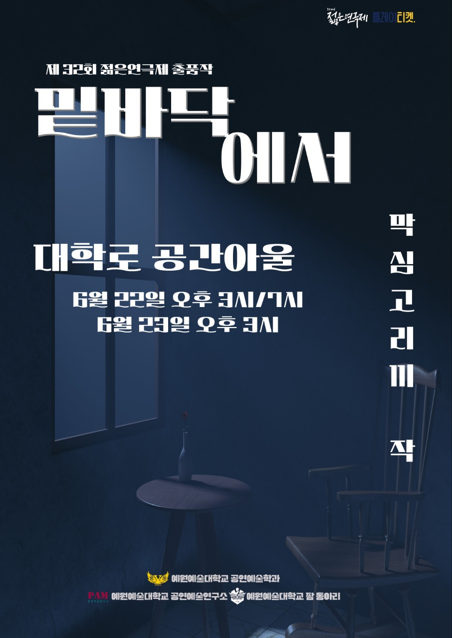 예원예술대학교 공연예술학부 공연예술전공은 지난 2024년 6월 22일부터 23일까지 대학로 공간 아울에서 <밑바닥에서>를 공연하며 뮤지컬뿐만 아니라 연극 공연까지 다양한 장르를 섭렵해 나아가고 있다. 연출, 무대, 조명, 음향, 의상, 분장, 소품 등 다양한 분야를 학생들이 완성도 있게 만들어 가는 과정을 경험하였으며 관객들에게 큰 호평을 받았다.