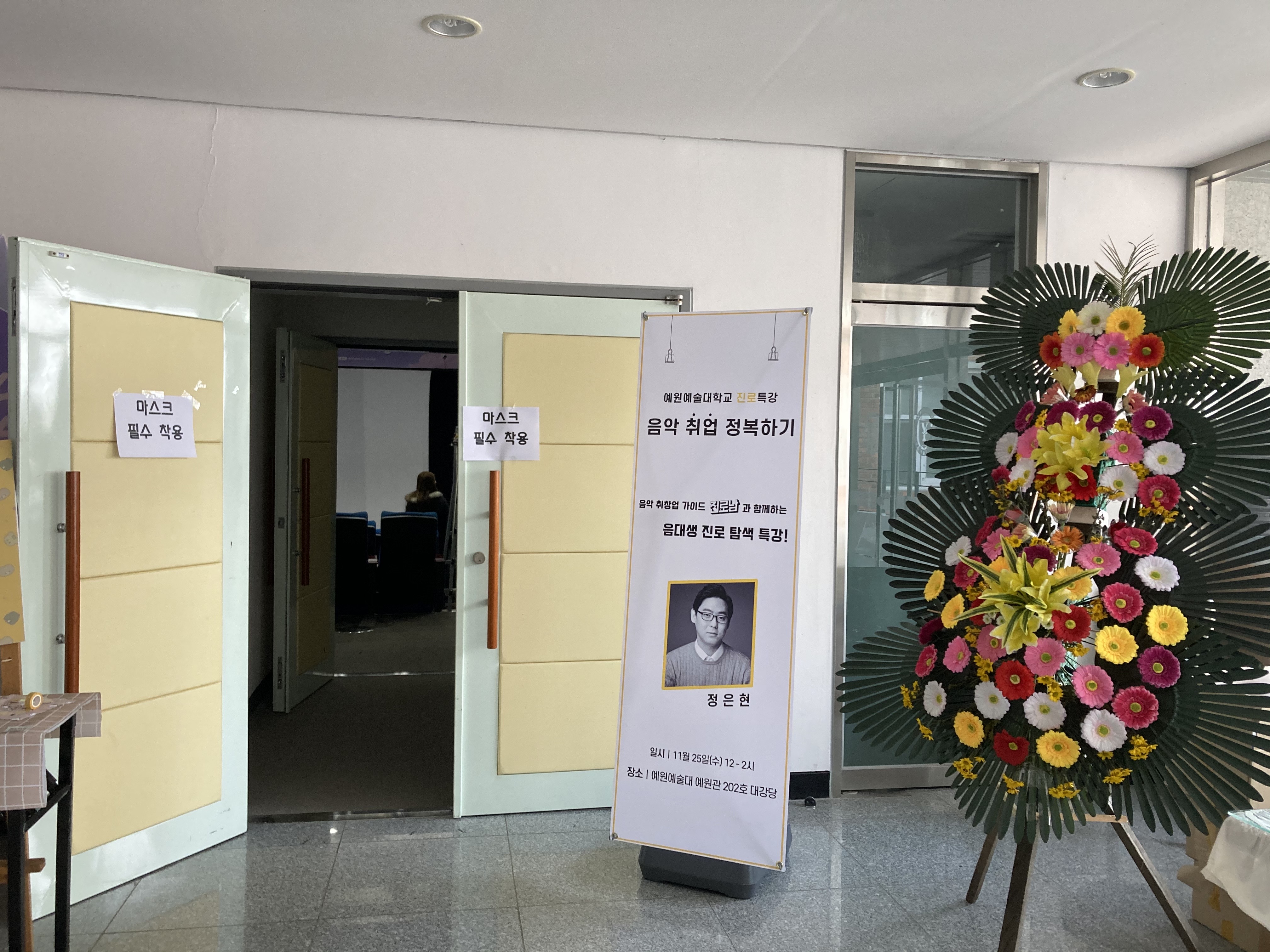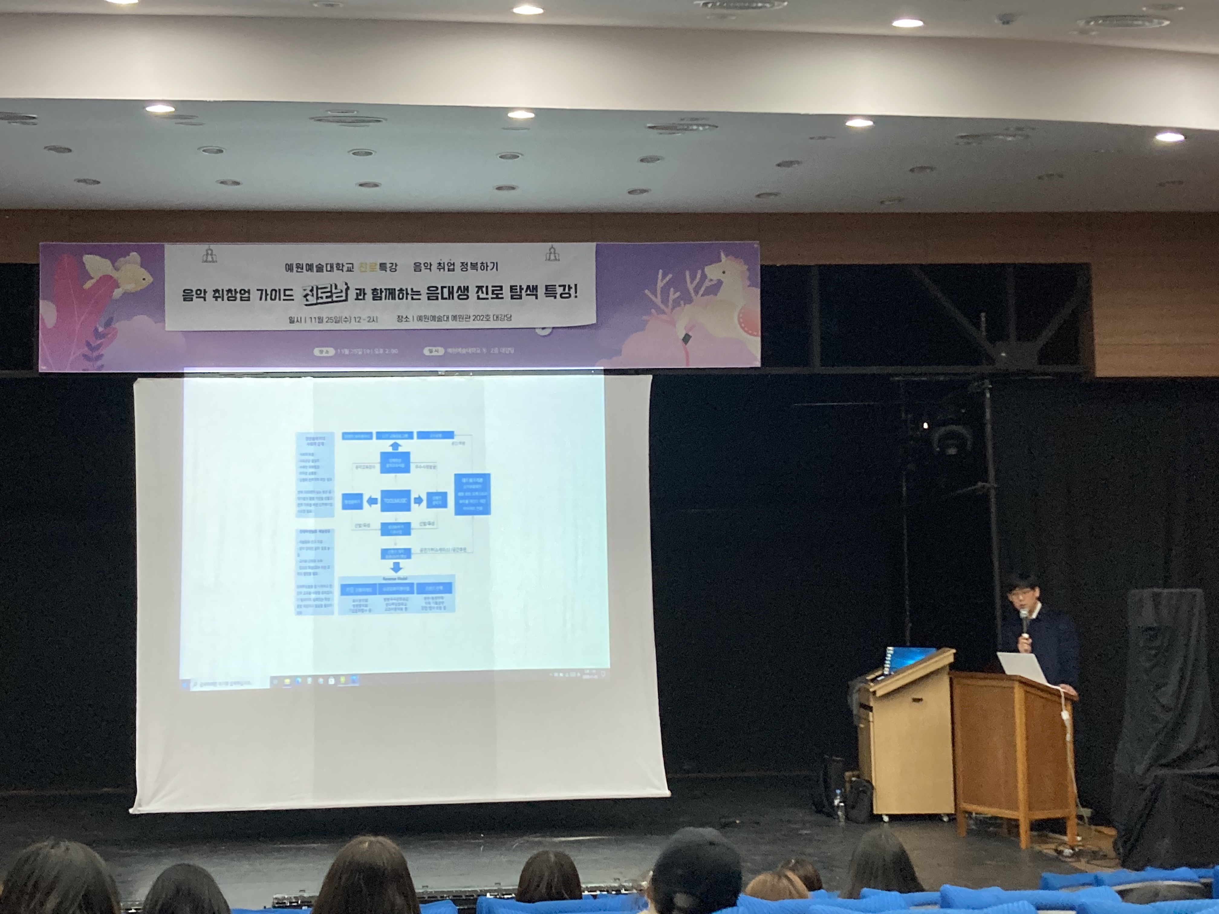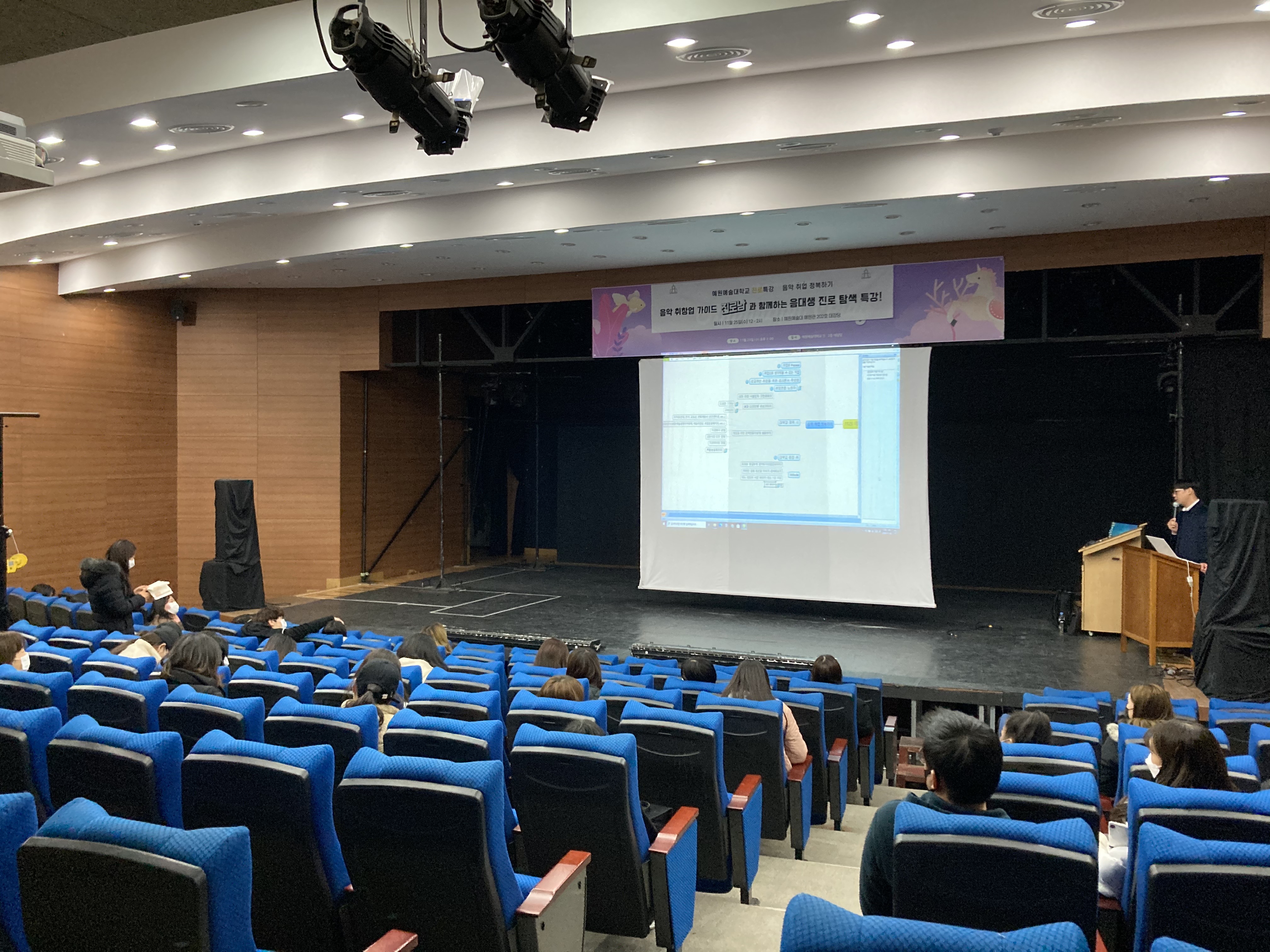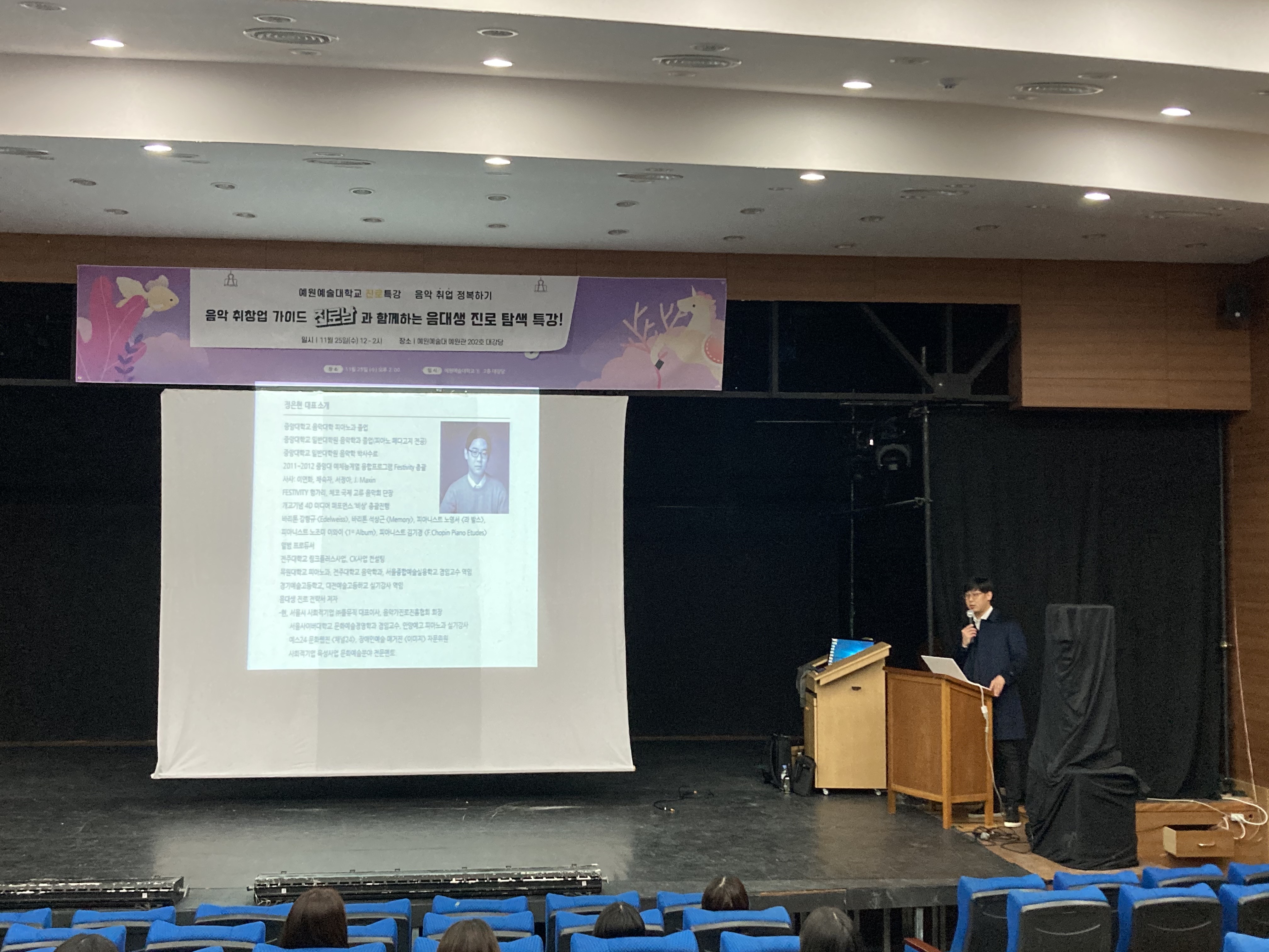 지난 11월 25일 예원예술대학교 음악학과 전 학년을 대상으로 「음대생 진로 전략서」의 저자인 정은현 대표의 특강이 있었다. 피아노를 전공하고 음악학 박사를 수료한 정은현 대표는, 진로를 고민하고 다양한 길을 모색해온 음악인으로서, 국내 최초로 취업부터 창업까지 자신의 생생한 경험을 바탕으로 한 살아있는 진로 전략서인 「음대생 진로 전략서」를 지난 7월 국내 최초로 출간했고, 현재 사회적 기업 툴뮤직의 대표이다.