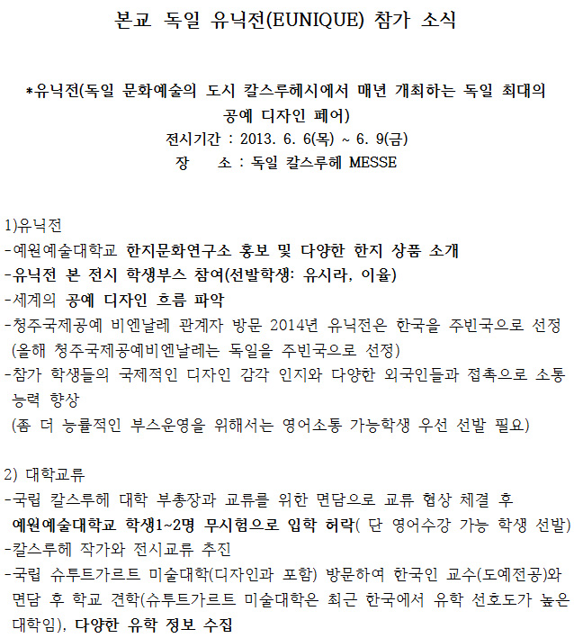 본교 독일 유닉전(EUNIQUE)참가 소식