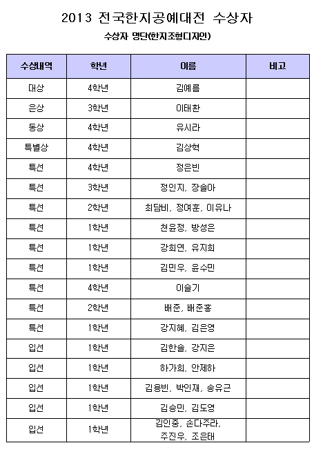 본교 2013 전국한지공예대전 수상 소식