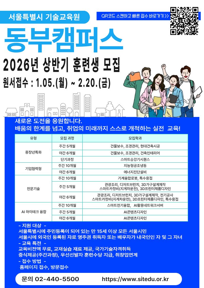 2026년 상반기 서울특별시 기술교육원 동부캠퍼스 교육훈련생 모집