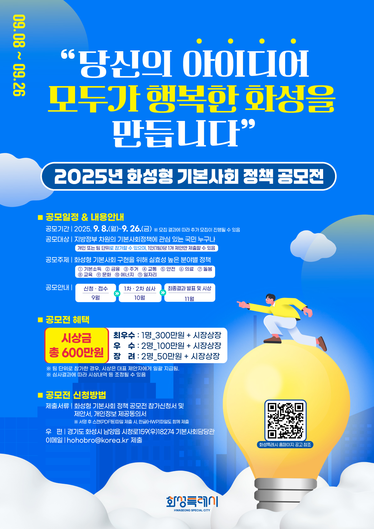 「2025년 화성형 기본사회 정책 공모전」을 추진하고 있습니다.