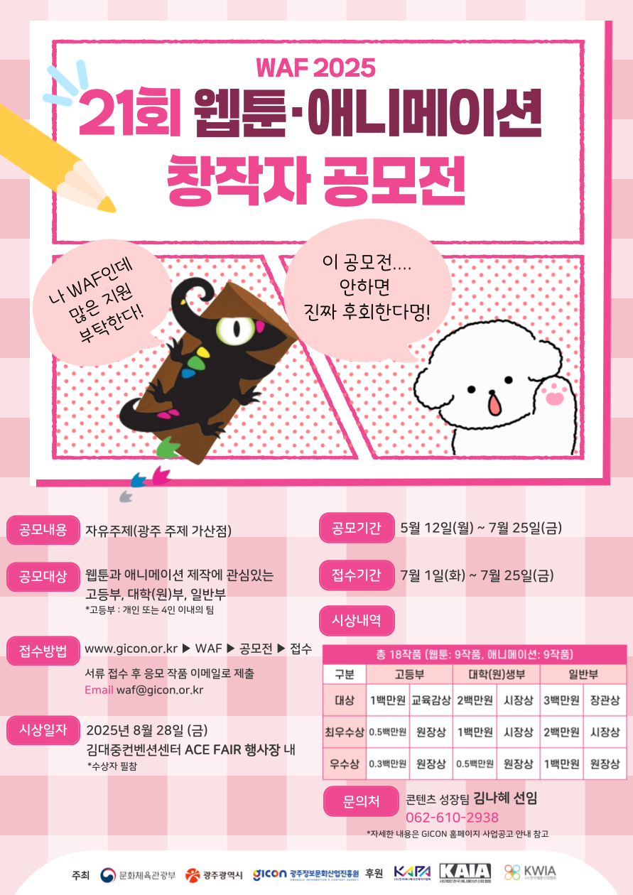 WAF2025 제21회 웹툰·애니메이션 창작자 공모전