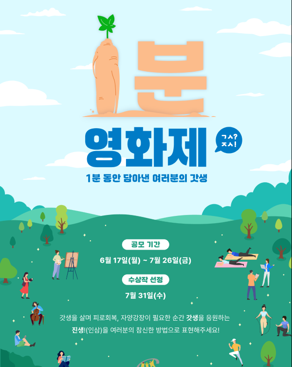 - 갓생을 응원하는 인삼을 참신한 방법으로 표현한 영상 ( 1분 이내 )