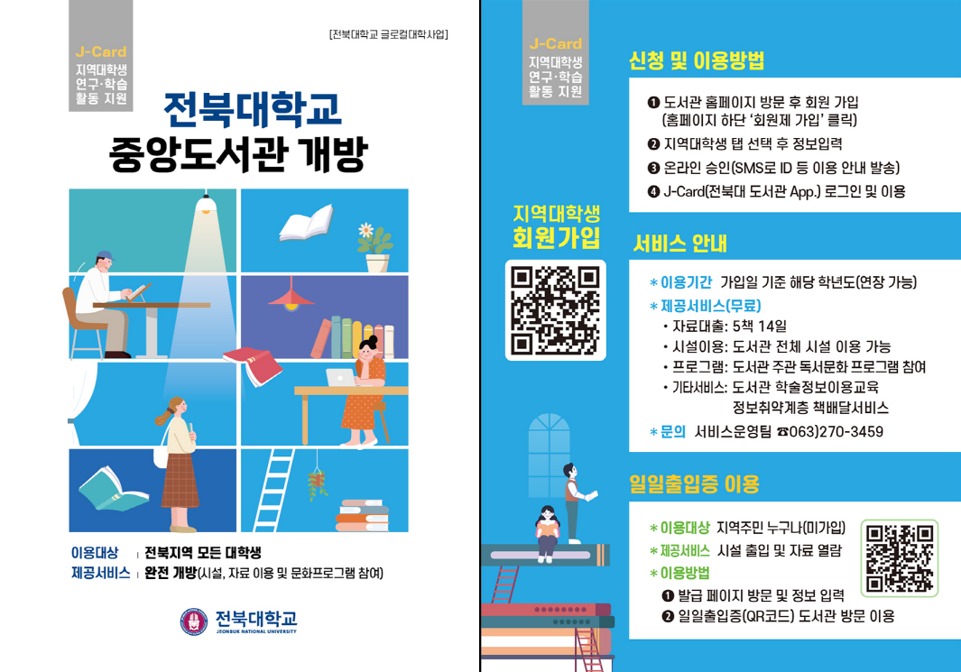 ○ 기타 안내사항: 지역 대학생들에게 전북대 중앙도서관을 개방하는 J-Card 서비스 시행 중(붙임 2 참고)